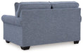 This loveseat is defined by comfort, convenience and classic style. Soft to the touch and stain-resistant, the family-friendly Next-Gen Nuvella™ fabric is easy to maintain. And you'll love the universal appeal of its denim-inspired hue. With roll arms adding a dash of traditional flair, the loveseat is a simply chic approach to everyday relaxation.