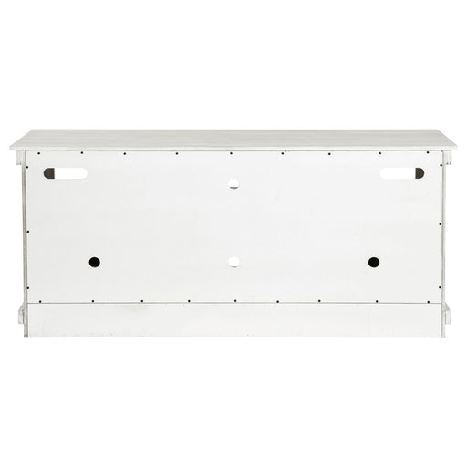Upgrade your entertainment space with this 79-inch TV stand, featuring a contemporary boxy silhouette and smooth surfaces. The distressed pine fini...