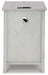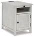Add big character to a small space with this chairside end table. With its compact size and strong silhouette, it can go anywhere and blend easily into the decor. Less is so much more with the Shaker-inspired design and gray wood tone finish. Loaded with form and function, this end table displays accent pieces and stores essentials securely while keeping devices powered up.