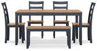 Gesthaven Dining Table with 4 Chairs and Bench (Set of 6)