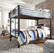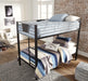 Step up to a higher level of style in kids bedroom furniture with this twin bunk bed. A cool response to the trend in modern industrial design, this metal bunk bed sports a black and gray for a welcome touch of maturity.