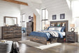 When merged in just the right way, rustic and industrial styles can make one happy marriage. Case in point: this full bookcase bed with storage. A refined take on barn board beauty, its complex, replicated wood grain showcases hints of burnt orange and teal tones for a sense of weatherworn authenticity. Three open cubbies lined with a dimming LED light strip keep bedtime reads top of mind. Underneath the bed: a pair of smooth-gliding drawers and two open cubbies that accommodate casually cool storage bins.