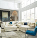 Plush and posh. Showcase your eye for on-trend texture with the statement-making cord upholstery of this sectional and ottoman package. Its stunningly soft fabric entices in a light gray hue, complementing contemporary color palettes. Sink into the cushions and plan to stay a while—this cozy living room seating set highlights your high-end approach to comfort and style.