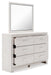 The epitome of fashion-forward design, this dresser with mirror set is a beautiful blend of comfort and luxury. Shiny chrome-tone accents, a pearlized finish and mosiac pulls bring a glam touch to the richly rustic appearance. Six smooth-gliding drawers provide plenty of storage space for your wardrobe needs.
