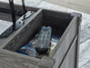 Open the door to modern farmhouse style with this lift-top coffee table. The beautiful woodgrain look and classic crossbuck metal accents are a cool touch, while the lower shelf provides surface space for fashionable home accessories. Sporting a gray replicated wood grain effect, its handy spring-loaded mechanism brings the tabletop closer to you. This versatile table makes it easier than ever to eat, work or play from the comfort of your sofa.